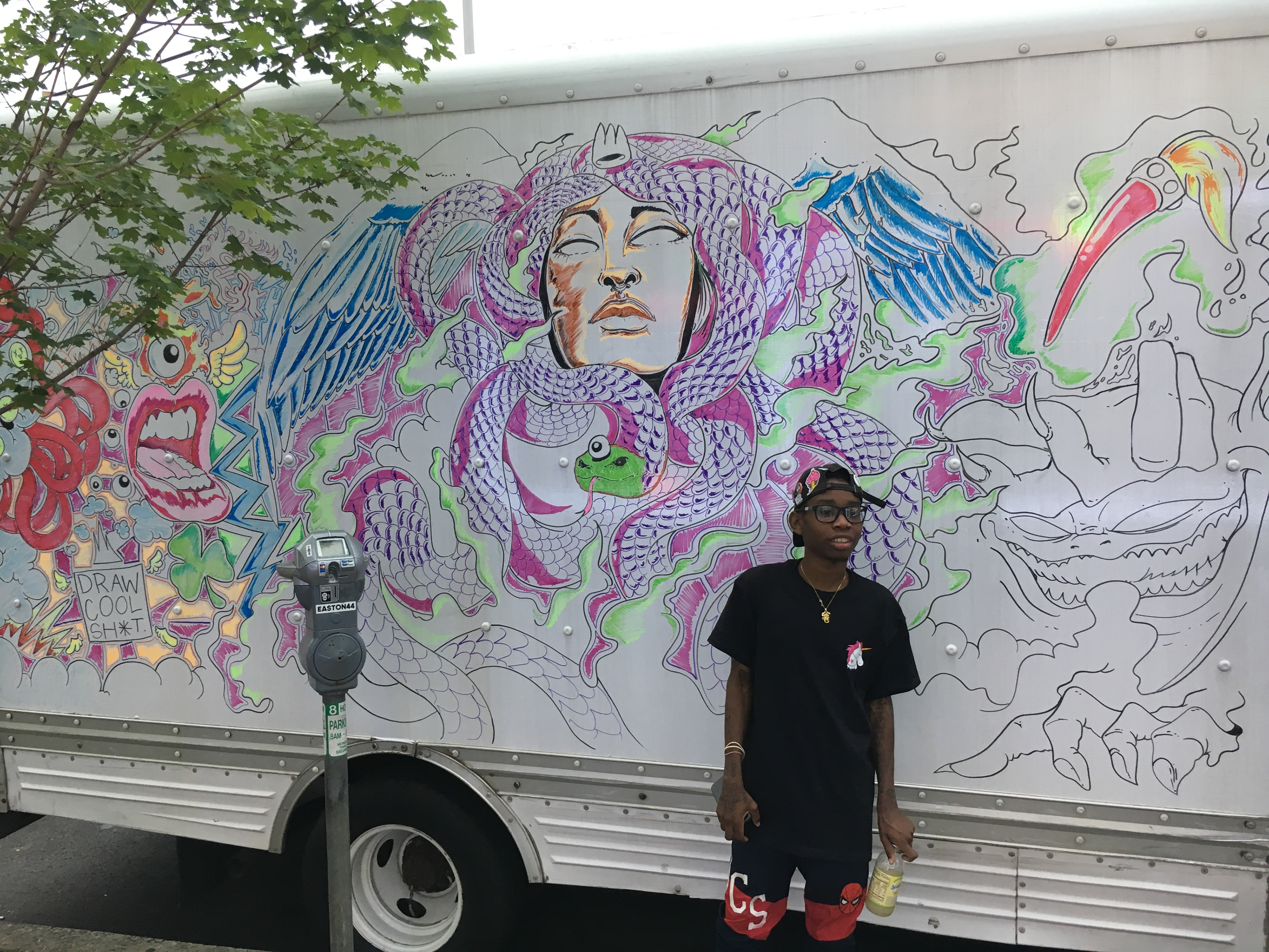 An example of the dry-erase art capabilities enabled by the sticker on the passenger side of the Creative Space.